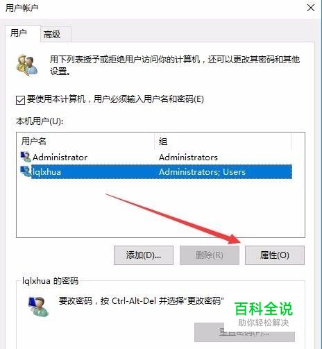 选中要修改的账户,然后点击右下角的“属性”按钮