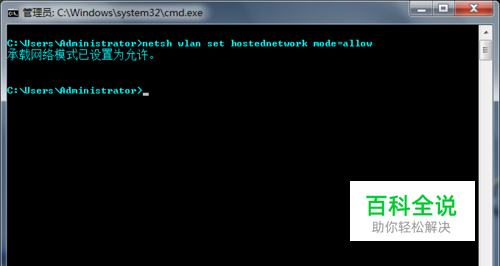 在命令提示符(cmd)下输入命令:netsh wlan set hostednetwork mode=allow ,然后回车。把承载网络模式设置为允许。如果嫌打字麻烦的话,可直接复制命令,然后在命令提示符界面上点击右键,然后选择粘贴就行。快捷键CTRL+V是没用的。