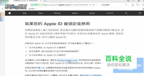 点击第一项“如果您的Apple ID被锁定或停用”,点击文中解锁地址“iforgot.apple.com”。