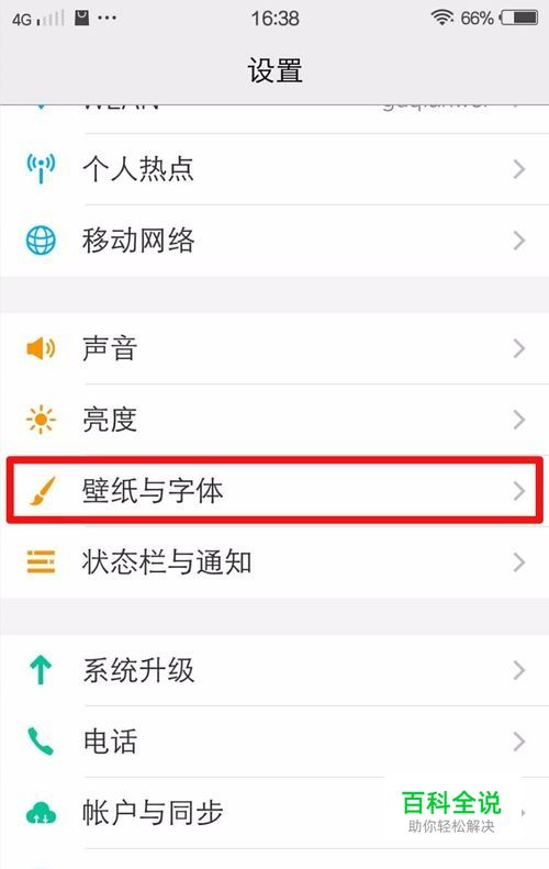 然后,进入到【设置】这个界面以后,点击【壁纸与字体】选项。 如图所示