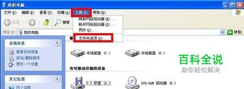 进入“我的电脑”,点击上面的菜单栏,选择“工具”----“文件夹选项”
