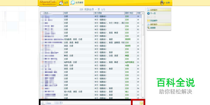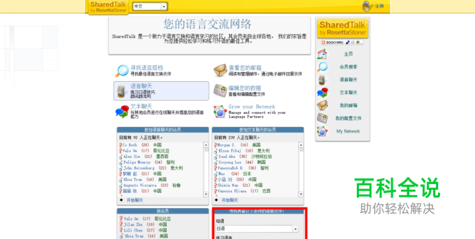然后选择你自己的母语和要练习的语言,点击搜索系统会 自动为你列出适合你的笔友 选择 你看中的人然后可以看到他的简介 如图:黑色方框为个人简介-红色方框可以点击给他发送邮件!