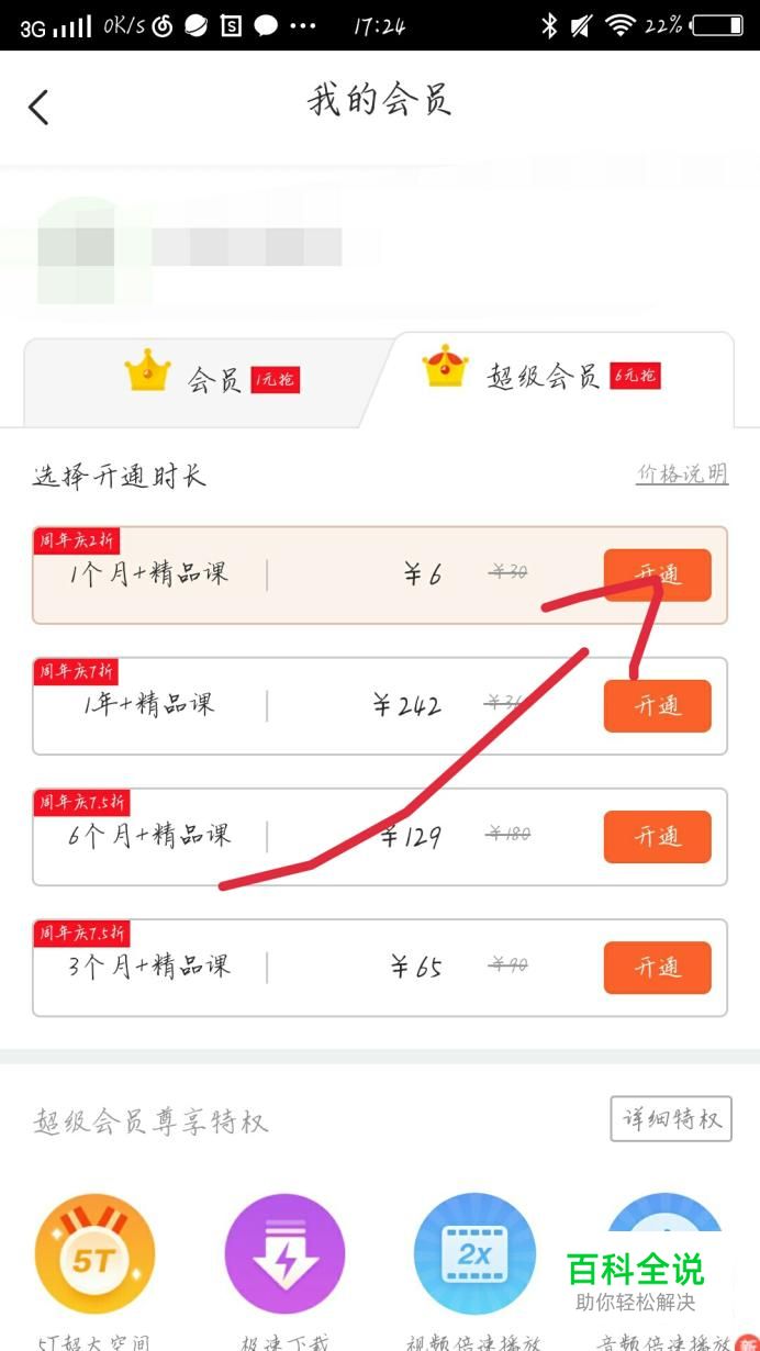 点击“开通超级会员”选项,如图1箭头所示。你会看到进入一个新的界面,如图2所示。