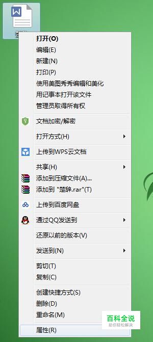 我们先关闭此文档,然后选中文档点击鼠标右键在弹出的对话框里点击“属性”进入。