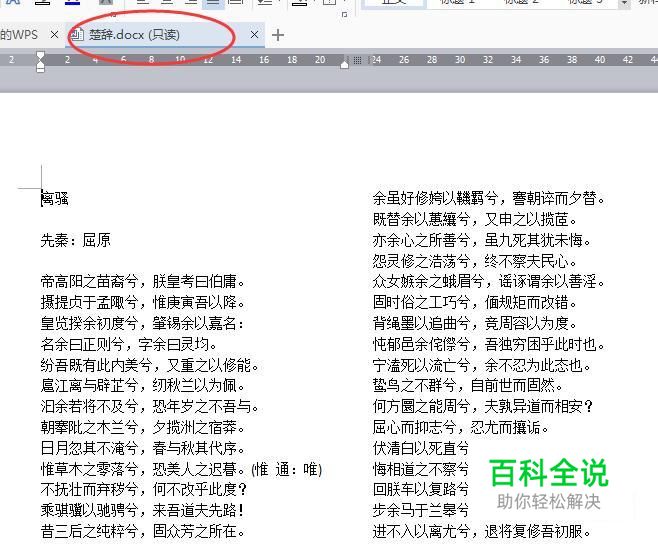 在提示此文件为只读时,我们打开此word文档,如图在文档上方也会显示为“只读”。