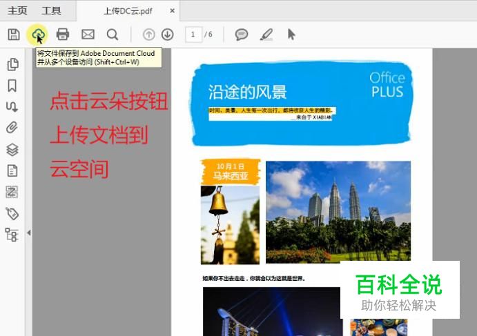 接下来我们可以打开一个本地的PDF文件,然后点击顶部的云朵按钮将本地的文件上传到Document Cloud空间,如下图所示