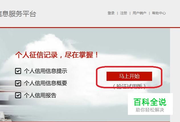 进入之后,进入互联网个人信用信息服务平台,然后点击“马上开始”,查询个人信用报告。