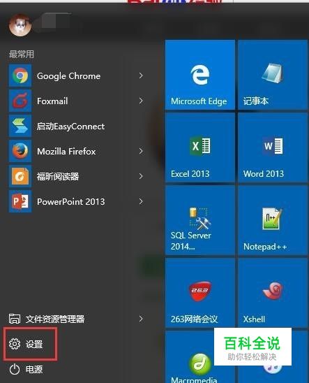 打开 开始 菜单,在开始菜单中选择 “设置”
