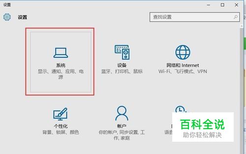 在弹出的设置菜单中,选择"系统(显示、通知、 应用、电源)"