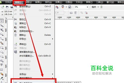 先运行CorelDRAW X4 ,然后在工具栏中找到 编辑----插入条形码