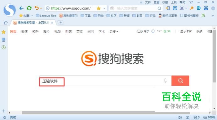 进入浏览器之后,我们登录搜狗搜索,然后我们输入压缩软件,之后按键盘上的回车键;