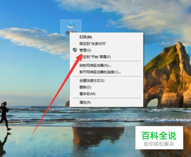 打开点电脑,右击此电脑,选择“管理”,如图所示。