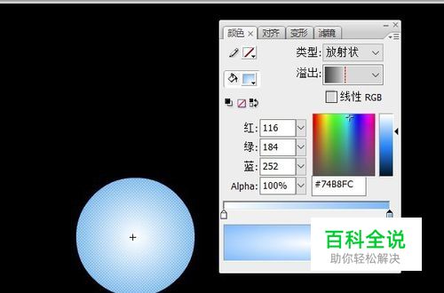 首先做一个圆球作为图形元件。O键调出椭圆工具,禁用线条色,填充渐变色。颜色如图设置。