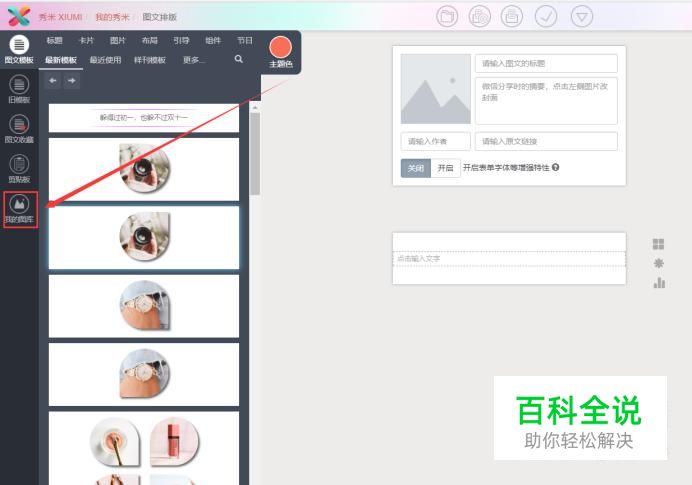 首先登入到秀米编辑器中,选择新建一个图文或者H5秀,点选左侧“我的图库”。