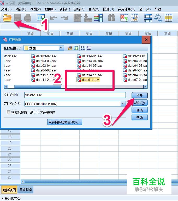 打开SPSS软件后点击右上角的【打开文件按钮】打开你需要分析的数据文件