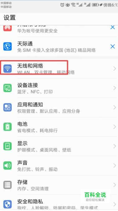 然后我们点击无线和网络,如图所示;