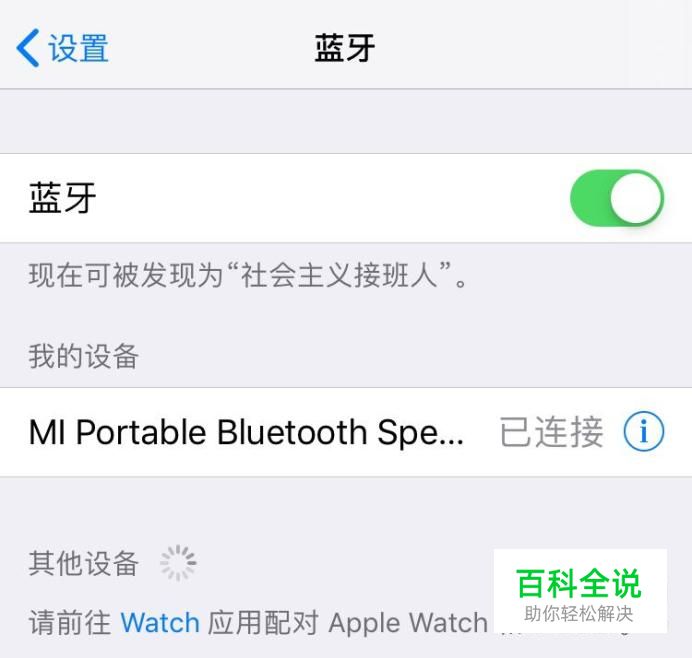 (以小米蓝牙音响连接苹果手机为例子)首先确保蓝牙音响有电量,然后开启音响。