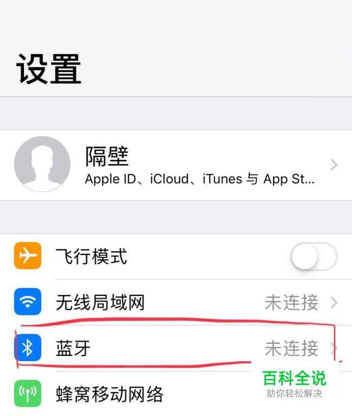 在手机上的“设置”中找到“蓝牙”,此时显示的蓝牙功能处于关闭状态。