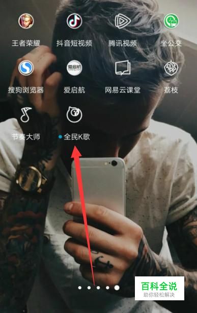 打开手机,找到全民K歌,点击并进入,如图所示。
