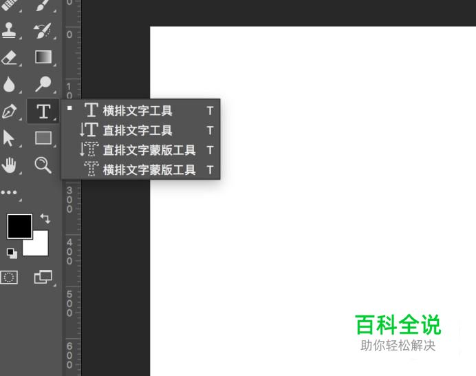 打开电脑中的PS软件,右键点击文字工具,选择“直排文字工具”