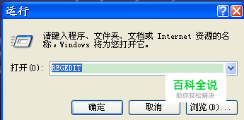 首先单击“开始”,进入“运行”,输入“regedit”,打开注册表。