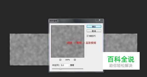 再选择菜单: 滤镜 -> 模糊 -> 高斯模糊,半径为5个像素