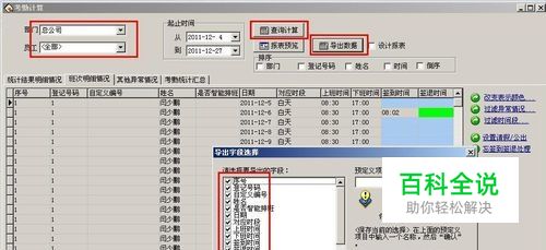 如图所示,开始结束的时间包含所有时间段,如果设置错误就无法显示此时间段外的打卡记录。