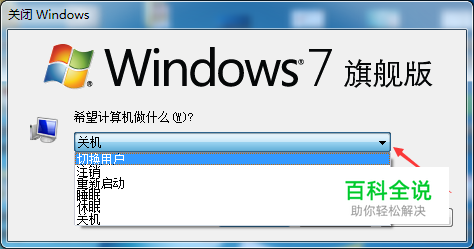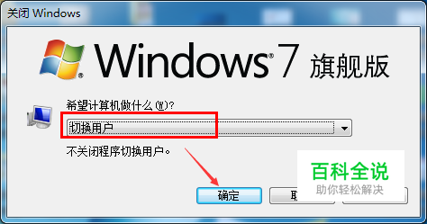 在Win7系统里同时按下”Alt+F4“组合快捷键,打开关闭Windows窗口,点下拉列表选择切换用户,来切换需要登录的用户