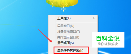 右键Win7系统的任务栏,选择弹出菜单的任务管理器,如下图所示。