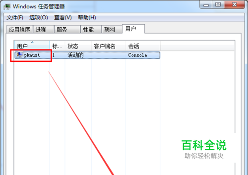 点击选中任务管理器的用户选项下的用户,然后点击断开。如下图所示。