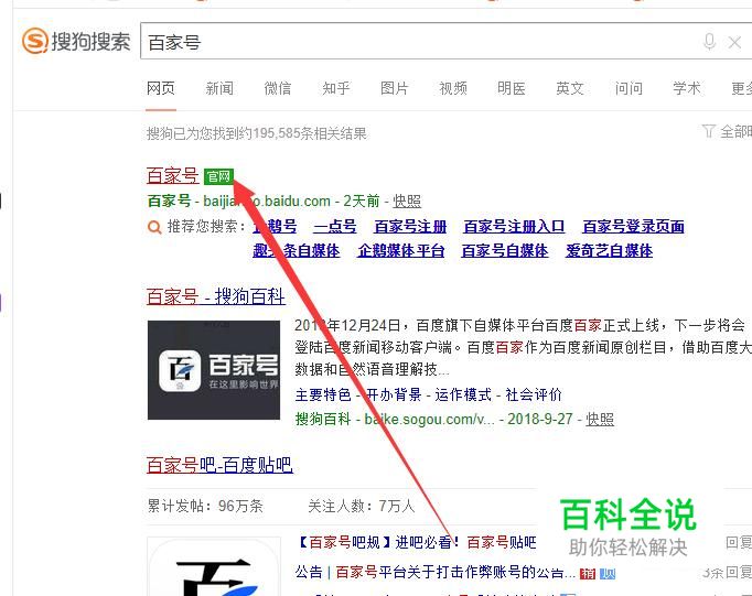进入之后,搜素“百家号”,点击并进入,如图所示。