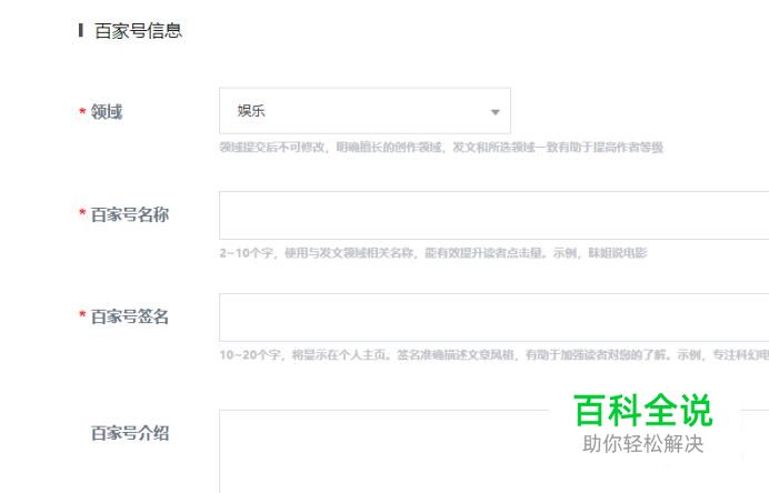 进入之后,填写百家号申请信息,点击“提交”即可,如图所示。