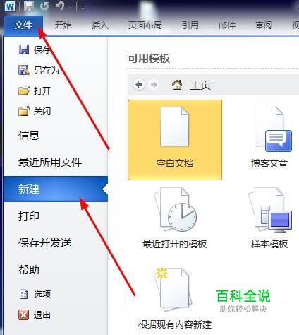 首先,打开Word2010,点击文件菜单,点击新建命令。