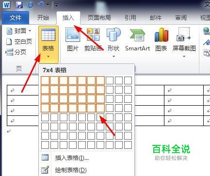 第二种方法,点击插入选项卡,点击表格,插入一个6行7列的表格。