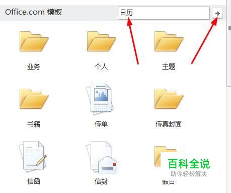 在中间Office.com模板后面的搜索框中输入日历,点击搜索按钮。