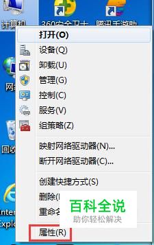 在电脑桌面上看到计算机的图标后右键点击会看到属性功能,如图