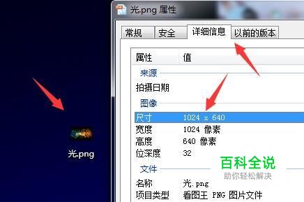 首先,如图所示图片,右击查看其属性详细信息,尺寸是1024*640,图片类型是png。