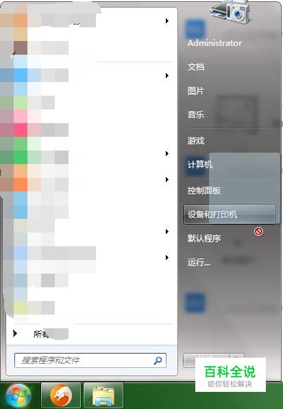 如图,打开一个打印的文档,打印后要取消,点击电脑视窗键,选择“设备和打印机”进入。