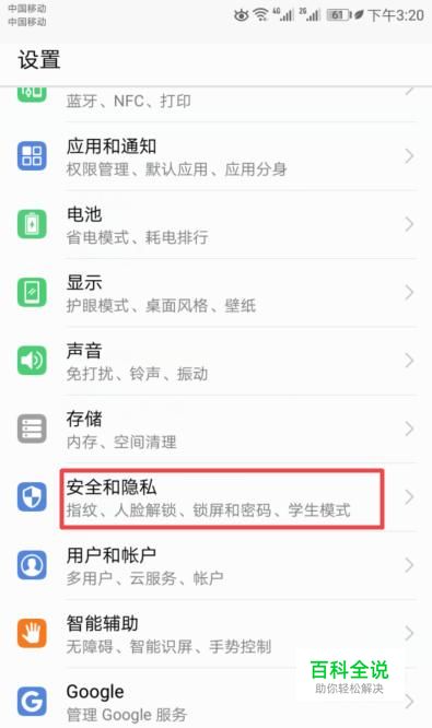 弹出的界面,我们点击安全和隐私;