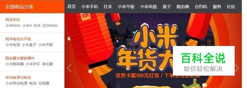 点击打开小米官网,在小米首页的滑动图片上找到小米年货大集图片,点击进入小米红包领取入口页面,如下图所示。