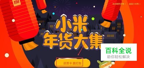 点击打开小米年货大集红包领取页面,我们点击送贺卡赢红包按钮,如下图所示。