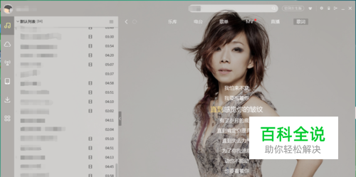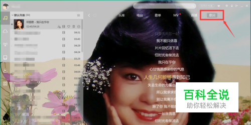 方法三:找到当前酷狗界面上的“歌词”,点击显示歌词,将鼠标放在右侧中央,会显示一个菜单,选择“桌面写真”