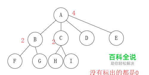 结点的层次,根节点的层次为0,从根节点开始,后面的孩子结点都是其双亲结点的层次+1。如A的层次为0,B、C、D、E的层次是1,F、G是B的层次+1(即2),H、I是C的层次+1(即2)。树的深度,是结点层次的最大值,这颗树的深度是2。