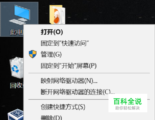 在桌面“此电脑”上右键单击,弹出如下图所示菜单,选择“属性”项。
