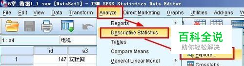 打开数据以后,在菜单栏上执行analyze--descriptive statistics--explorer,打开explorer对话框