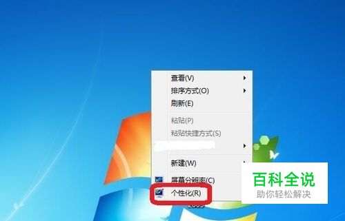 右击桌面的空白处,调出右击的下拉菜单,在菜单中找到“个性化”,