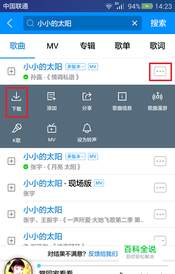 第二步搜索我们要下载的歌曲,点击如下图所示下载