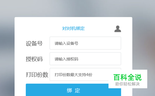 接下来点击对对机绑定,进入下图所示界面,需要输入的内容有设备号、授权码、打印份数这三项,其中授权码客服会告诉你,设备号请参考第三步,打印份数一般根据商家的需求进行自定义填写(例:如果你只有厨房和外卖派送人员需求,打印2份即可)