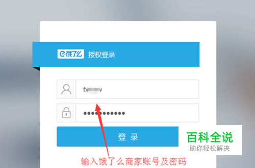 根据客服顾问提供的后台链接,打开进入饿了么授权后台,输入商家账号以及密码点击登录即可,如下图所示界面。