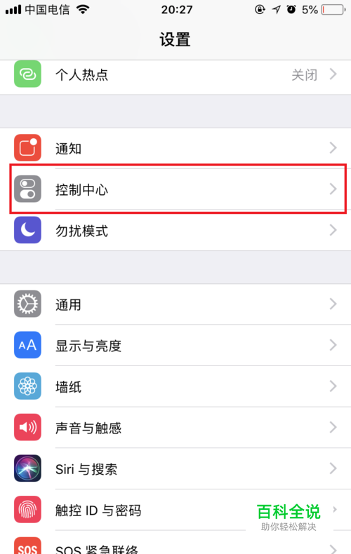 第一步很多人找不到屏幕录制,我们先把屏幕录制添加到主屏幕的控制中心,打开手机设置-选择控制中心。